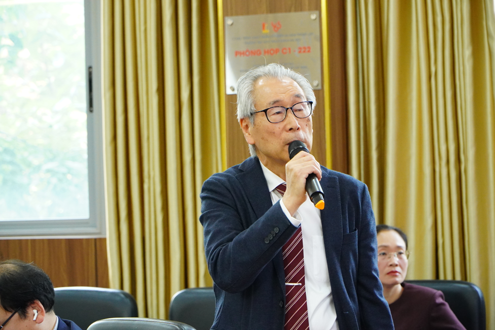 Attending the meeting, on the Vietnamese side were Assoc. Prof. Dr. Nguyen Dac Trung – Head of the Parnership and Engagement Department, along with representatives from the School of Chemistry and Life Sciences, the Center for Rubber Science and Technology, and scientific management staff, lecturers, and researchers of the University. On the Japanese side were Prof. Takashi Yamaguchi, Prof. Kawahara Seiichi, Emeritus Prof. Masao Fukuda (Nagaoka University of Technology), representatives from JST, the JICA Vietnam Office, and experts and scientists participating both in person and online.