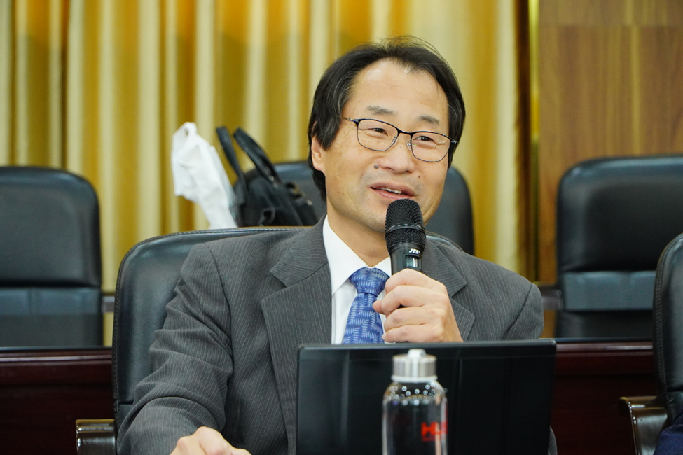 Prof. Seiichi Kawahara presents his report at the meeting.