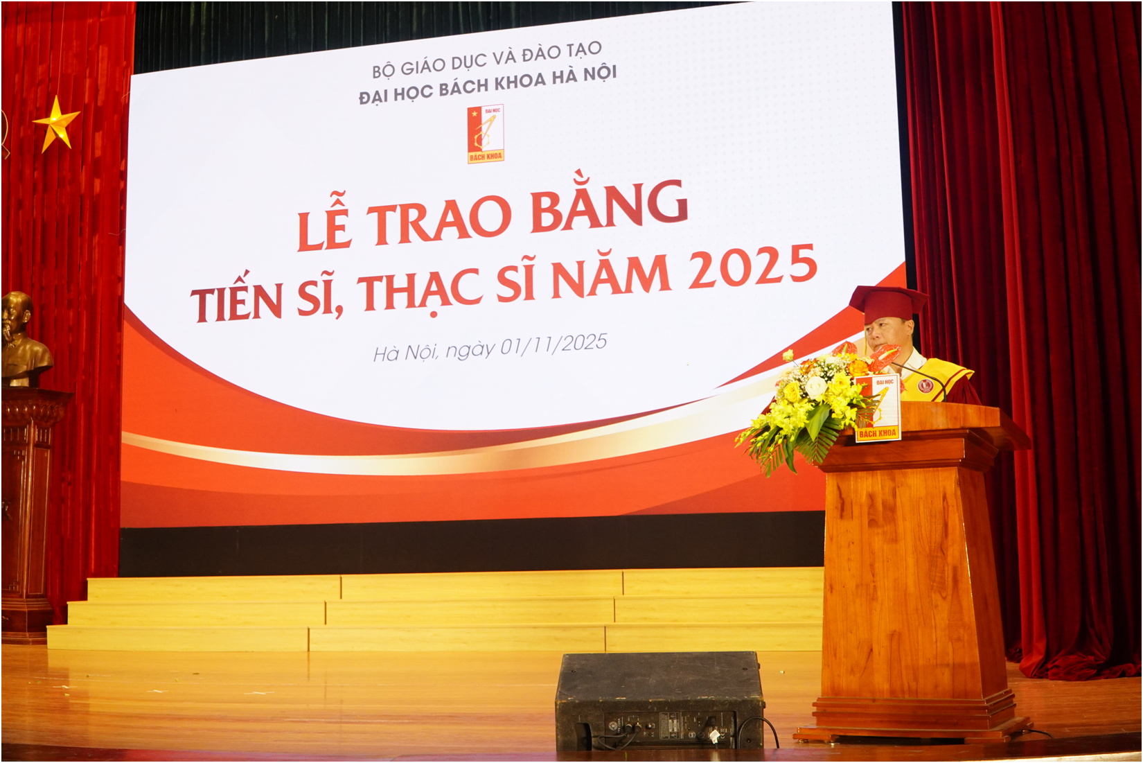 Phát biểu tại buổi lễ, PGS.TS. Nguyễn Phong Điền – Phó Giám đốc Đại học Bách khoa Hà Nội – khẳng định niềm tự hào khi Nhà trường công nhận và trao bằng cho các học viên đã hoàn thành chương trình đào tạo sau đại học. Đặc biệt, Trường Hóa và Khoa học Sự sống được ghi nhận với 5 tân Tiến sĩ và 57 tân Thạc sĩ, là một trong những đơn vị có số lượng học viên tốt nghiệp cao nhất năm nay.