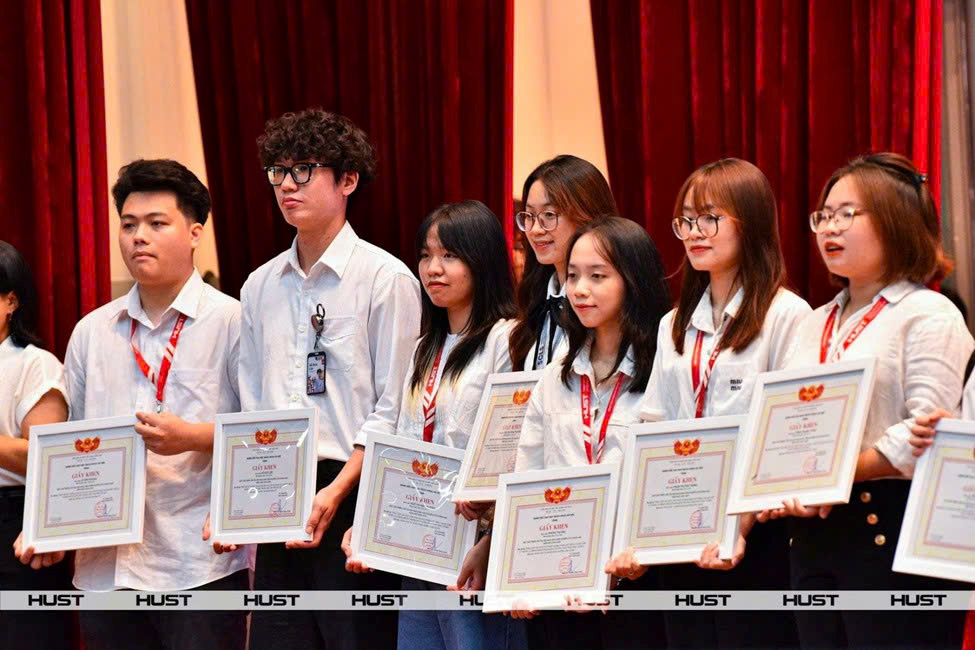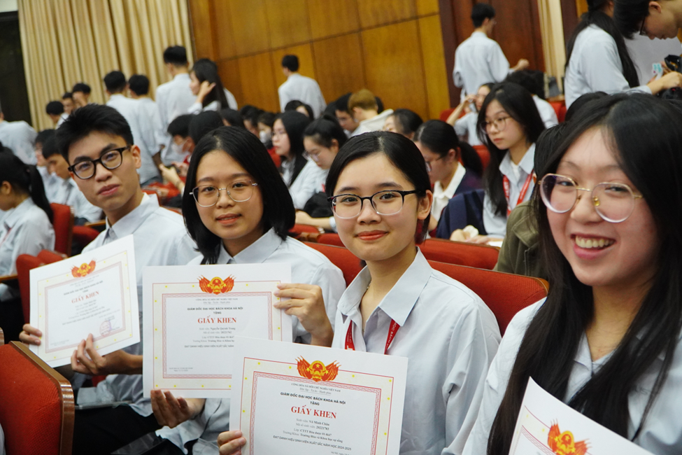 Những sinh viên xuất sắc năm học 2024 - 2025 được Giám đốc Đại học Bách Khoa Hà Nội tặng giấy khen.