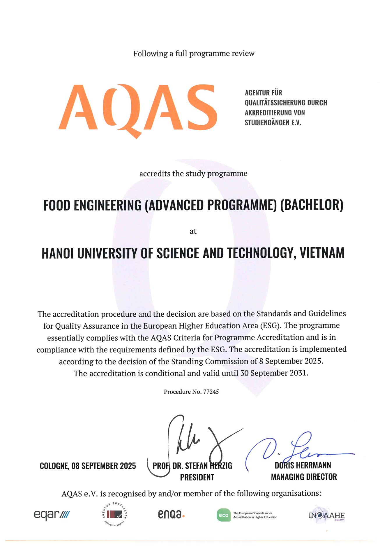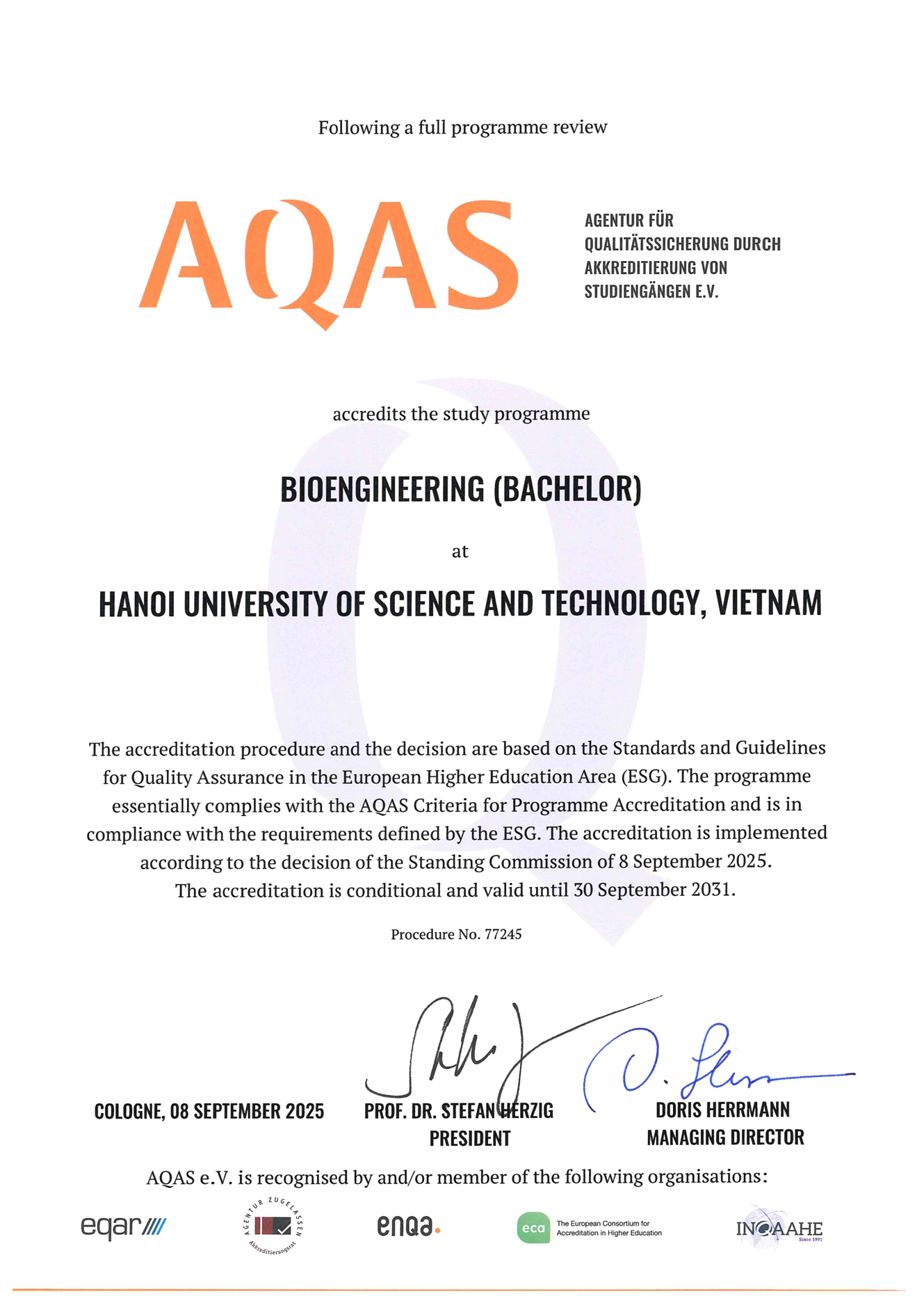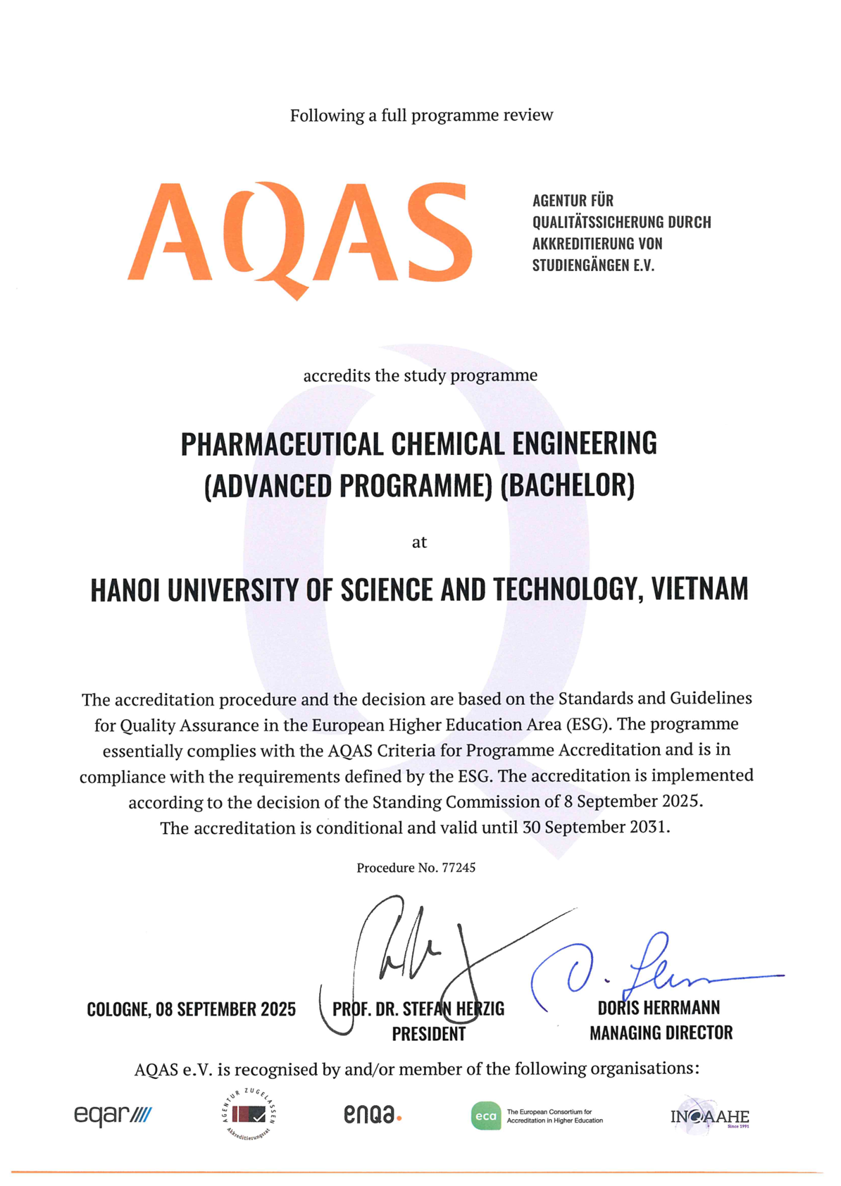 Trong bối cảnh toàn cầu hóa giáo dục, chuẩn kiểm định quốc tế chính là “tấm hộ chiếu” để các trường đại học khẳng định chất lượng, uy tín và vị thế của mình. Việc Trường Hóa và Khoa học Sự sống – Đại học Bách khoa Hà Nội chính thức được tổ chức AQAS (Cộng hòa Liên bang Đức) công nhận 03 chương trình đào tạo: Kỹ thuật Sinh học, Kỹ thuật Thực phẩm và Chương trình tiên tiến Kỹ thuật Hóa dược, không chỉ là niềm tự hào của thầy trò nhà trường, mà còn là minh chứng cho sự hội nhập của giáo dục Việt Nam với chuẩn mực toàn cầu.