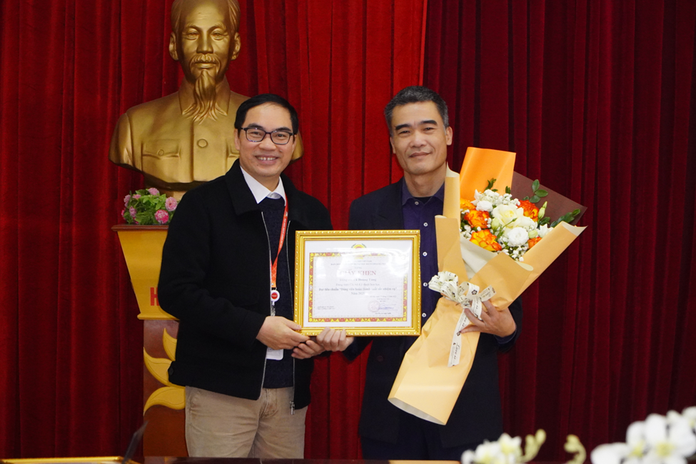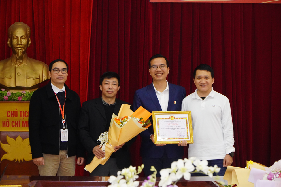 đ/c La Thế Vinh, Phó Bí thư Bí thư Đảng ủy Trường Hóa và KHSS lên trao tặng giấy khen cho tập thể Chi bộ KTHH