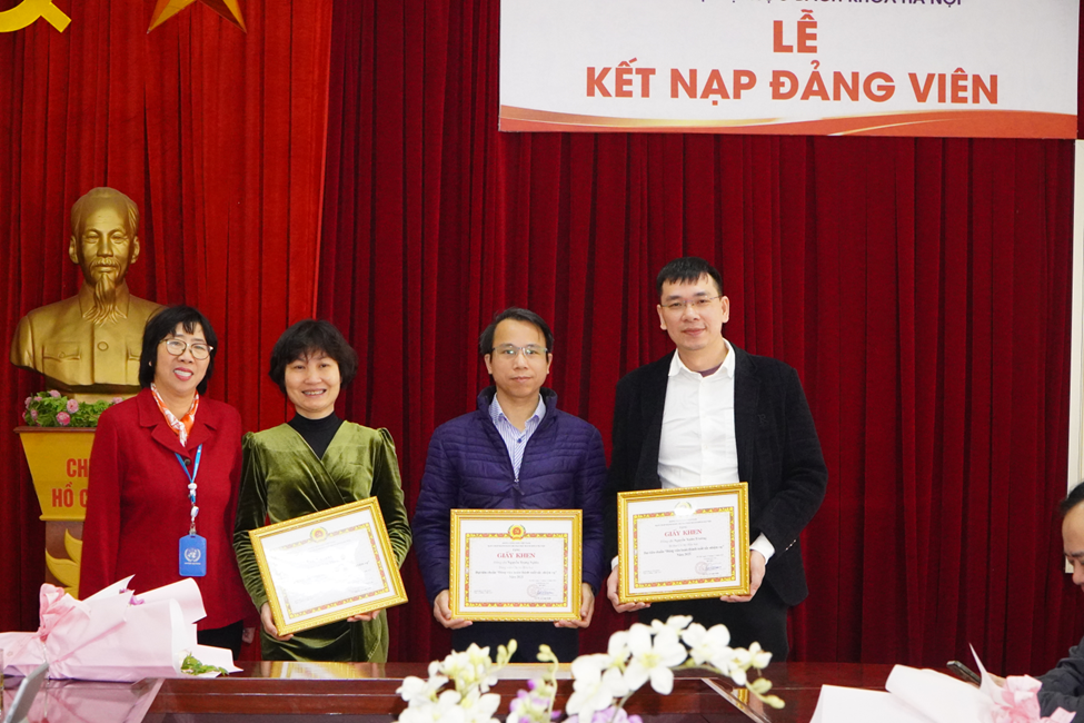 Chi bộ Kỹ thuật Hóa học đã công bố và trao Quyết định kết nạp Đảng cho ba quần chúng ưu tú: Đặng Thị Tuyết Ngân, Nguyễn Trung Dũng, Nguyễn Dương Định