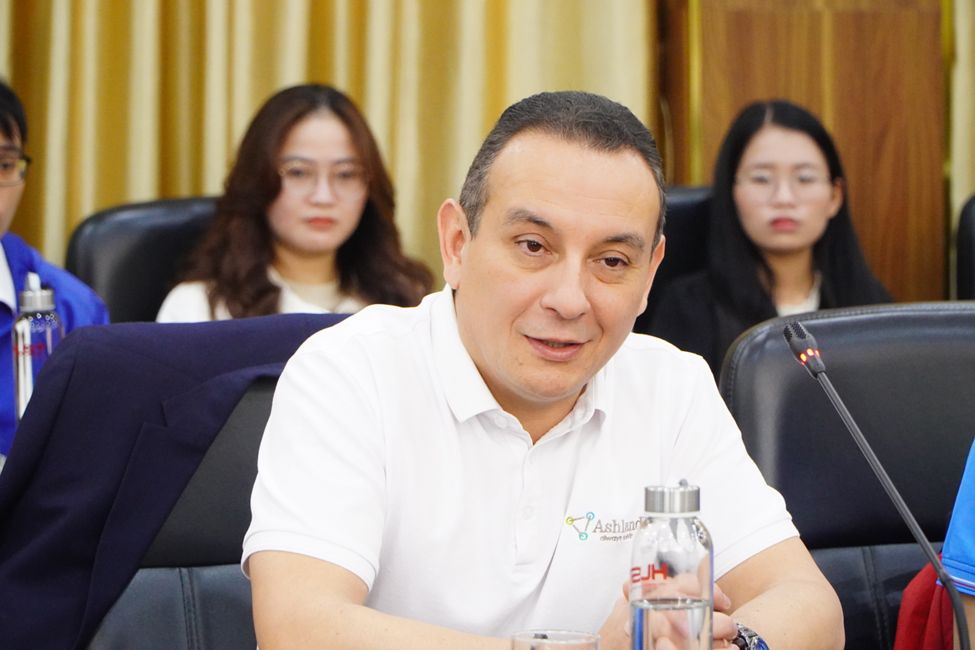 Sáng 4/4, tại phòng C1-222, Đại học Bách khoa Hà Nội đón một vị khách đặc biệt: ông Dago Caceres, Phó Chủ tịch cấp cao kiêm Tổng Giám đốc mảng phụ gia chuyên dụng của Tập đoàn Ashland – một trong những doanh nghiệp hàng đầu thế giới về vật liệu và hóa chất chuyên dụng.