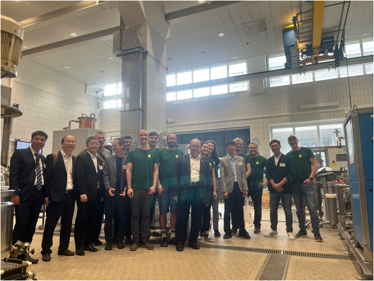 Đoàn đại biểu chụp cùng các sinh viên BOKU tại Nhà máy thí điểm Công nghệ Thực phẩm.