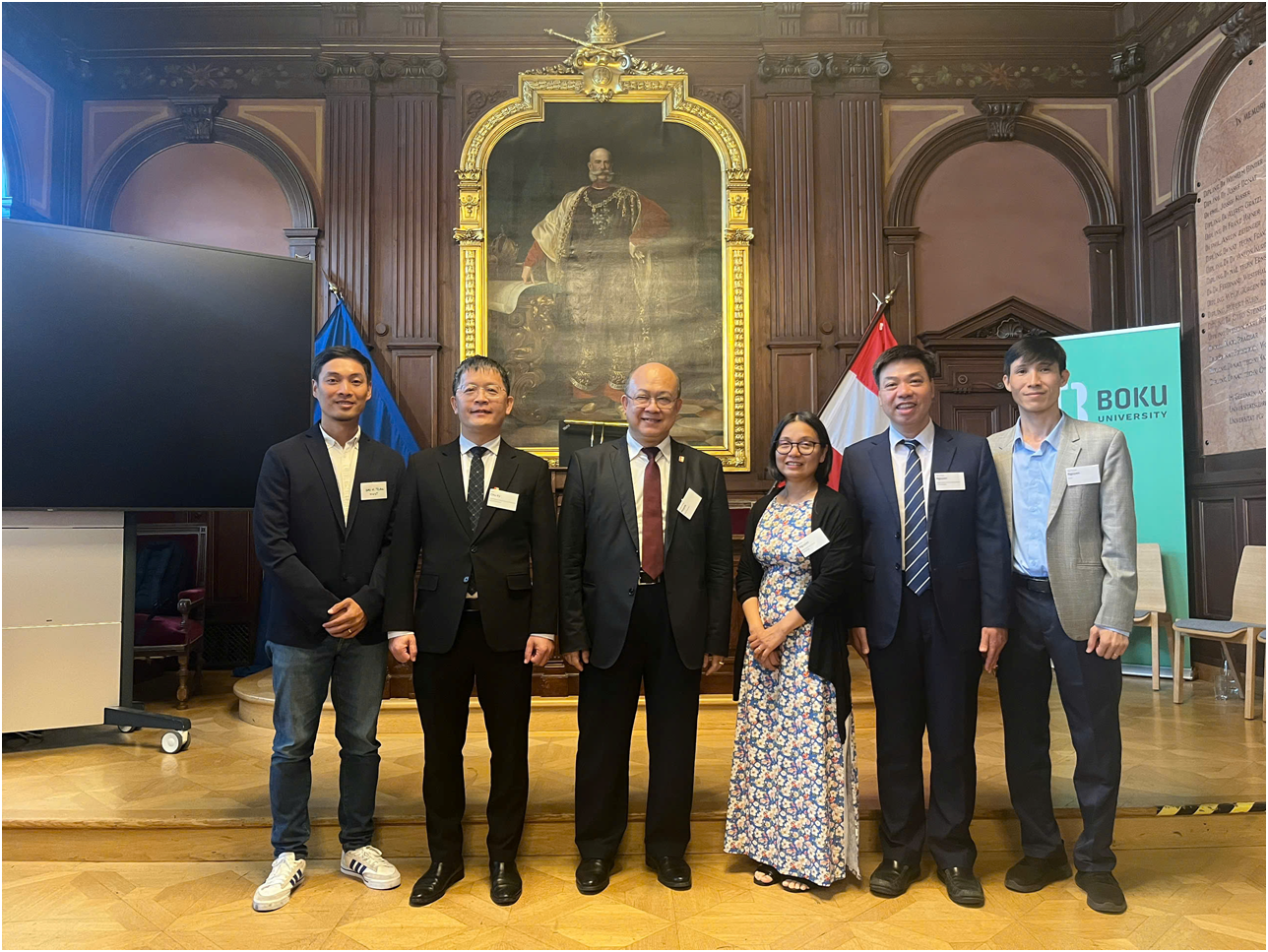 Đón tiếp đoàn tại BOKU có Hiệu trưởng GS. Eva Schulev-Steindl, GS. Dietmar Haltrich, PGS. Clemens Peterbauer – đại diện mạng lưới Asea-UniNet, cùng TS. Nguyễn Thu Hà – giảng viên BOKU, đồng thời là cựu sinh viên khóa đầu tiên của chương trình hợp tác. Tham dự còn có Đại sứ Áo tại Việt Nam – ông Philipp Agathonos.