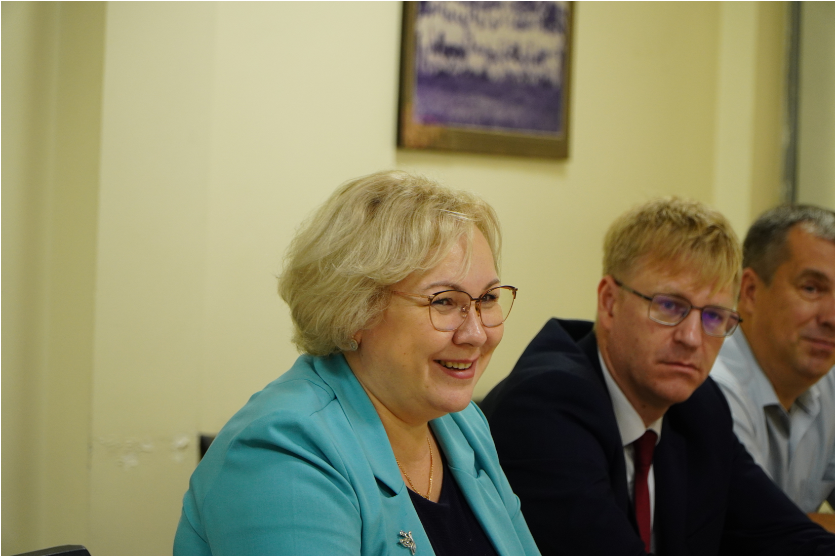 Buổi gặp gỡ do PGS.TS. Nguyễn Hồng Liên – Phó Hiệu trưởng SCLS chủ trì, cùng sự tham dự của PGS.TS. Đặng Trung Dũng – Trưởng Khoa Kỹ thuật Hóa học, các giảng viên SCLS và đại diện phía ISUCT gồm PGS.TSKH. Natalia E. Gordina – Hiệu trưởng, PGS.TSKH. Andrey A. Gushchin – Phó Hiệu trưởng phụ trách khoa học, cùng các chuyên gia về công nghệ vô cơ, hóa lý và phân bón.