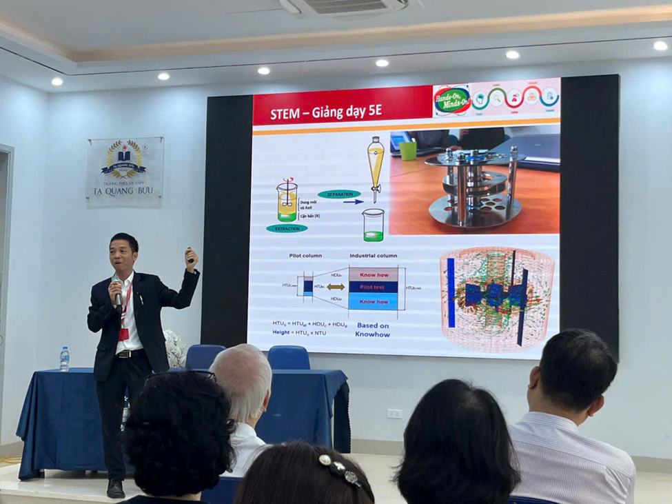 Trong khuôn khổ ngày hội, PGS. Tạ Hồng Đức – giảng viên SCLS, chuyên gia về giáo dục STEM – trình bày tham luận với chủ đề “STEM from School Lab to University, from University to Industry”. Bài tham luận nhấn mạnh vai trò của việc xây dựng lộ trình liên thông từ phòng thí nghiệm trường phổ thông tới đại học và doanh nghiệp, nhằm rút ngắn khoảng cách giữa học tập và thực tiễn nghề nghiệp.
